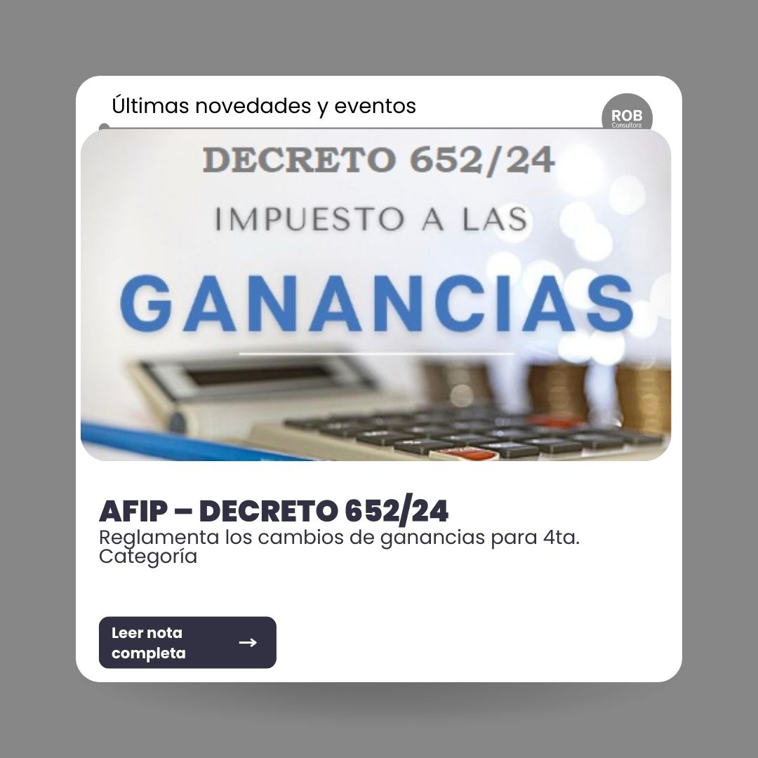 AFIP – DECRETO 652-24 – REGLAMENTA LOS CAMBIOS DE GANANCIAS PARA 4TA. CATEGORÍA